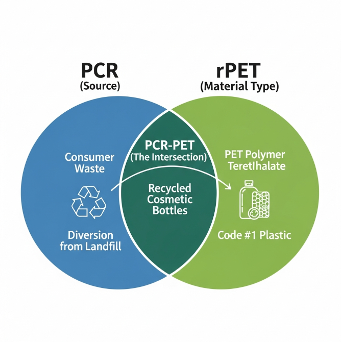 Acest ghid cuprinzător își propune să demestetifice relația dintre PCR și rPET, oferind mărcilor cosmetice care doresc să creeze un Sticla cosmetică ecologică și consumatorii conștienți de mediu cu claritatea necesară pentru a lua decizii informate și cu impact. Vom defini ambii termeni, le vom analiza diferențele de bază, le vom analiza performanța și vom explora de ce este importantă alegerea materialului potrivit pentru povestea de sustenabilitate a mărcii dvs.