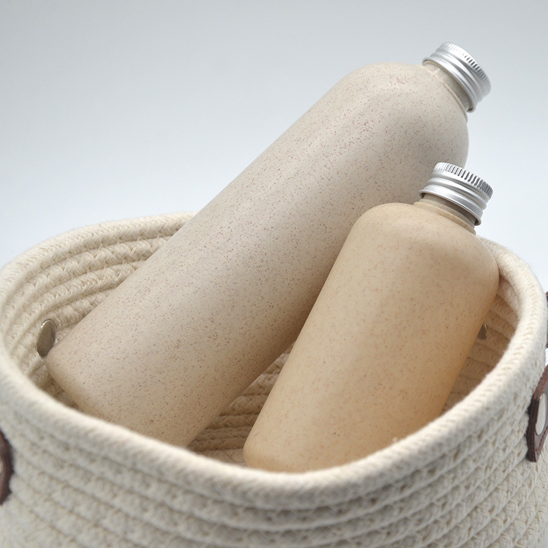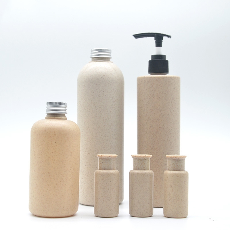 Acest cosmetic gol 30ml 100ml 250ml 300ml 500ml loțiune biodegradabilă paie de grâu din plastic unt de corp cremă de corp flacon șampon cu capac, sticla are o textură naturală pentru a oferi produsului o senzație estetică simplă, care este diferită de sticlele tradiționale de plastic și poate ajuta utilizatorii să sporească simțul ritualului..